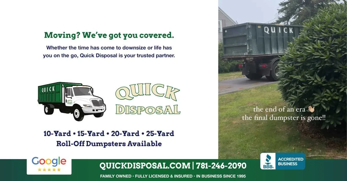 This year marks a major milestone for Quick Disposal— 30 incredible years as a second generation business serving Middlesex and Essex Counties on the North Shore of Massachusetts! Since opening our doors in 1995, we’ve stayed true to our roots as a family-owned, fully licensed and insured business. From dumpster rentals and demolition services to […]
