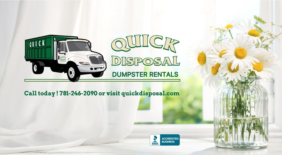 Call today and we’ll help you pick a suitable dumpster for your clean-out needs. Quick Disposal offers 10, 15, 20 and 25 yard dumpsters to accommodate whatever sized job awaits. Give us a call at (781) 246-2090 for same day roll-off dumpster rentals. You’ll feel great knowing you’re organized and ready to enjoy the summer […]